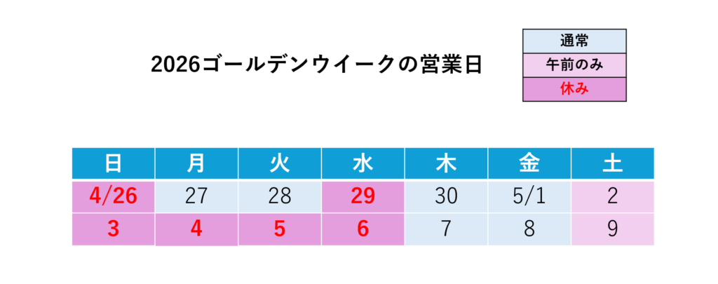 2026年03月30日ゴールデンウイークのお知らせ